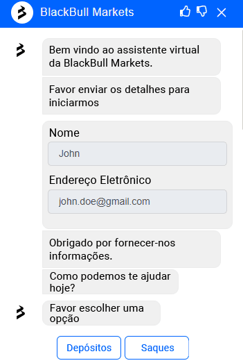 Eu testei diversas vezes o atendimento ao cliente da BlackBull Markets, tendo em vista que eu já me prejudiquei bastante por suportes de corretoras irresponsáveis anteriormente. Em mais de uma semana, eu testei todos os canais: chat ao vivo 24/5 (recurso principal da BlackBull), endereço eletrônico, suporte telefônico e até mesmo WhatsApp, garantindo a segurança da sua conexão.