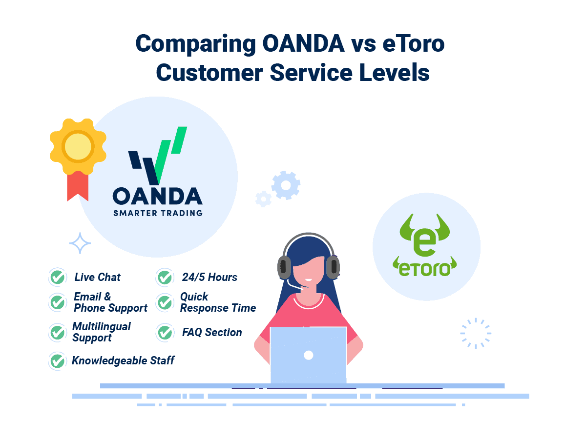 OANDA also provides customer service through live chat, email, and phone. They offer 24/6 support, giving them a slight edge over eToro in terms of availability. OANDA’s customer service is known for its quick response time and knowledgeable staff.