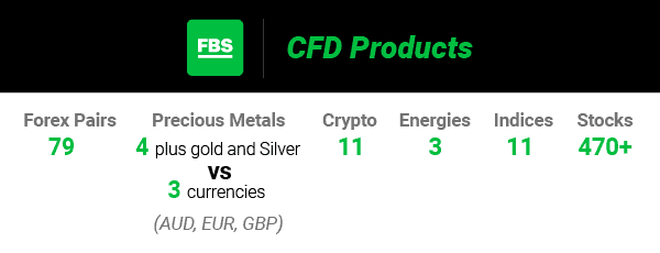 In my opinion, the FBS product range could be more diverse, with the introduction of other popular instruments like ETFs and bonds. As for leverage, I like that they offer a variety of options as they accommodate traders with different risk appetites.