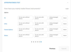 You’ll be asked to share information about your prior experience, if any, trading forex, CFDs and other financial instruments.