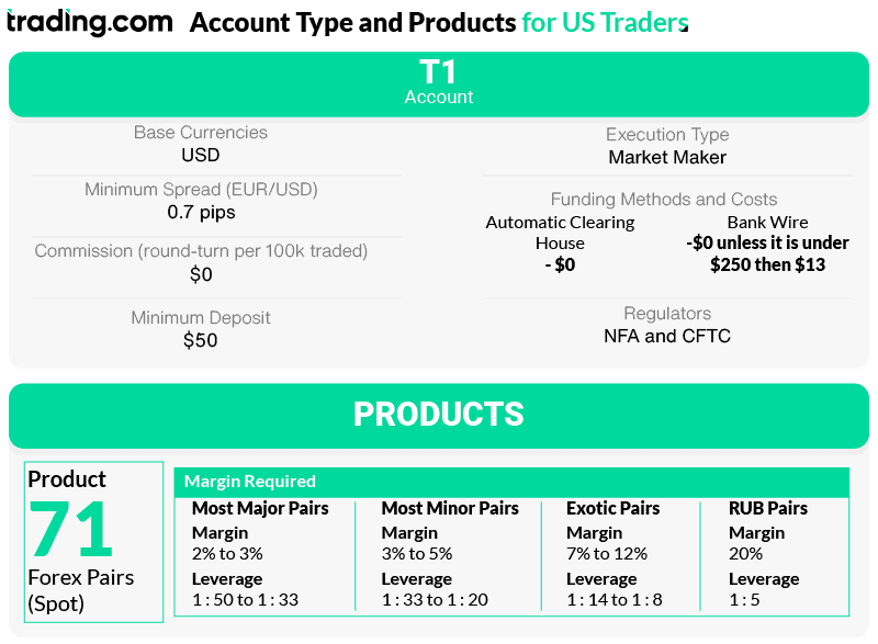 Trading.com also offers competitive spreads on its T1 account, which average 1.20 pips with no commissions, as well as a solid range of more than 70 forex pairs. I also found the broker has one of the lowest minimum deposits at $50, making it easier to start trading.
